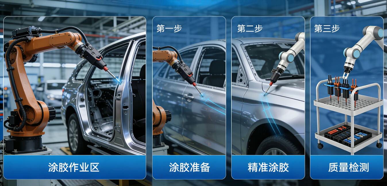 In industrial applications, robotic glue dispensing has penetrated multiple sectors. In the automotive industry, it is used for body sealing and power battery packaging, boosting both assembly quality and efficiency. In the electronics sector, it ensures stable bonding of precision components such as PCB boards and chips. In the new energy industry, it meets the high-precision requirements of power battery packaging while promoting the domestic substitution of core equipment.